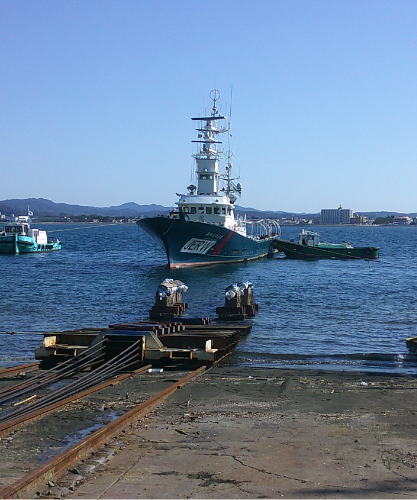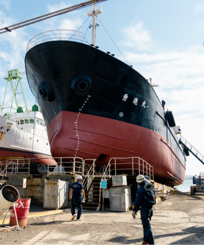 貨物船・漁船などの上下架・整備を継続的に行っており、高い信頼と継続依頼をいただいています。官公庁船の入札にも積極的に参加しております。
